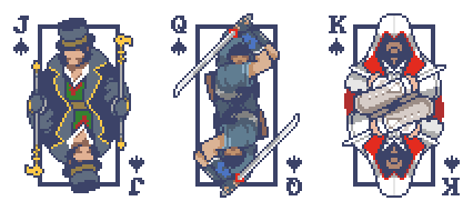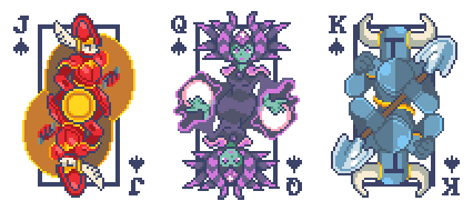 Face cards in the Spades suit can be replaced with characters from The Witcher 3: Wild Hunt, Cyberpunk 2077, Shovel Knight, Don't Starve, Assassin's Creed, or Slay the Princess.