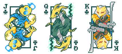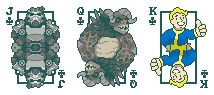 Face cards in the Clubs suit can be replaced with characters from Vampire Survivors, Slay the Spire, Potion Craft, Warframe, Dead By Daylight, or Fallout.