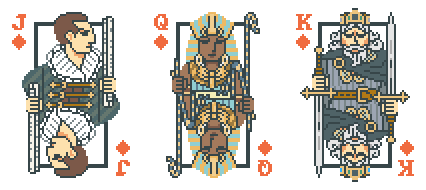 Face cards in the Diamonds suit can be replaced with characters from Dave the Diver, Stardew Valley, Enter the Gungeon, 1000xRESIST, Civilization VII, or Rust.